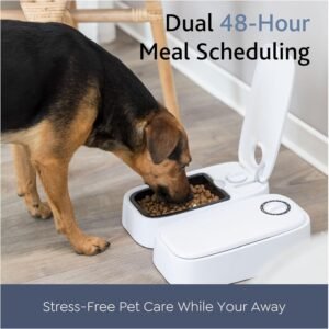 Der PetMate C500 Futterautomat bietet eine einfache und zuverlässige Lösung für die regelmäßige Fütterung von Katzen und kleinen Hunden. Mit fünf individuell programmierbaren Mahlzeiten sorgt er dafür, dass Ihr Tier stets zur richtigen Zeit frisches Futter erhält. Dank integriertem Kühlakku bleibt das Futter länger frisch, und die Reinigung ist besonders leicht. Ideal für den Alltag oder bei Abwesenheit für glückliche und gut versorgte Haustiere.