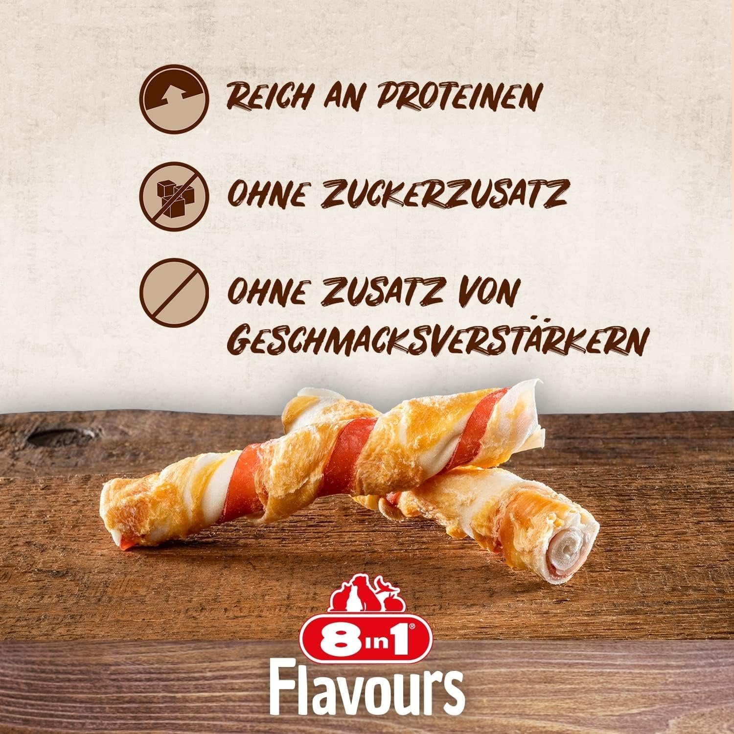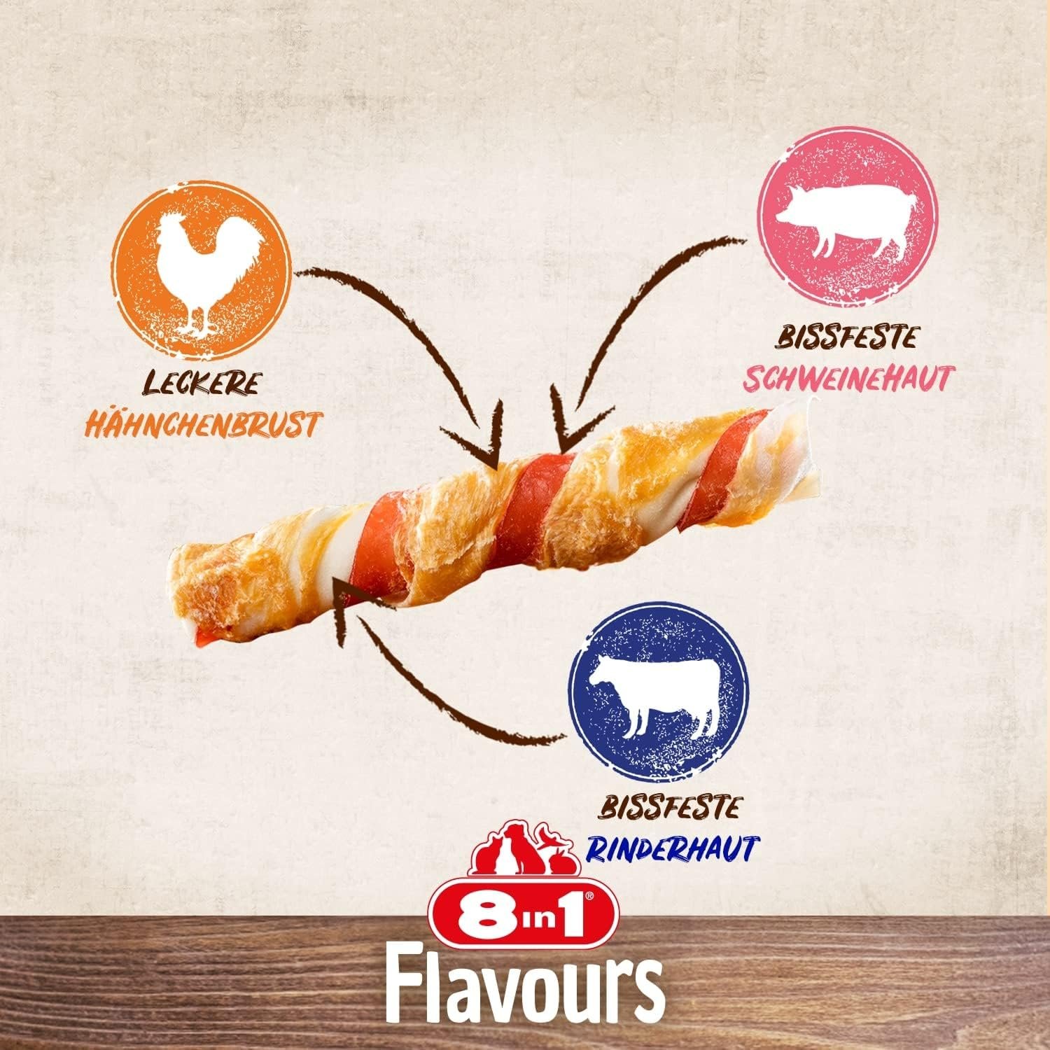 Zusammengefasst liefern die 8in1 Rolls mit ihrer Dreifach-Geschmacks-Kombination Genuss, Funktionalität und natürliche Zahnpflege. Hochwertige Zutaten garantieren beste Verträglichkeit, und die lange Kaudauer macht die Rolls zu einem idealen Alltagsbegleiter.