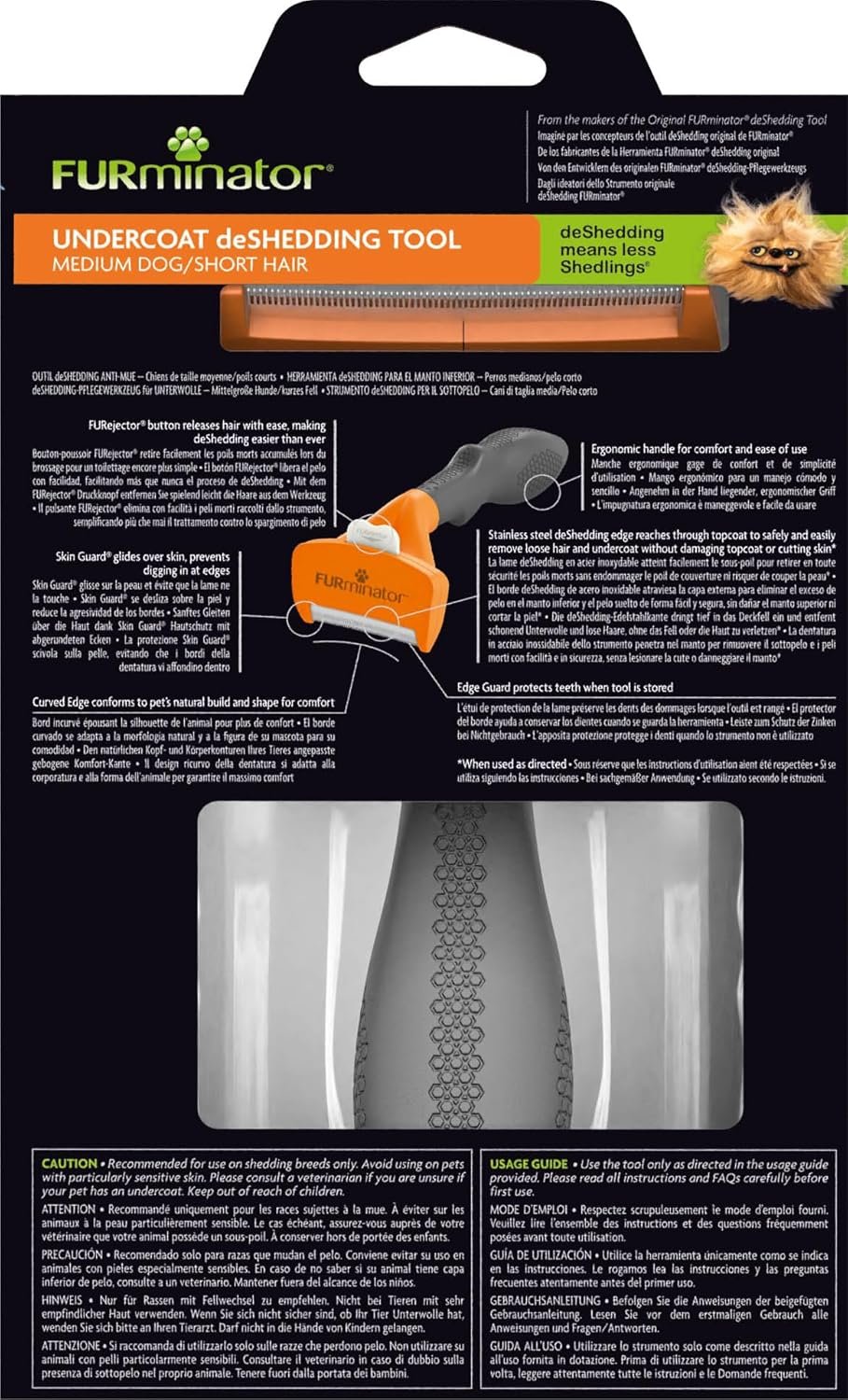 The FURminator deShedding Tool für mittelgroße kurzhaarige Hunde entfernt lose Unterwolle effektiv und reduziert den Haarverlust im gesamten Zuhause. Mit seiner Edelstahl-Kante, dem ergonomischen Griff und dem praktischen FURejector®-Knopf sorgt es für eine gründliche, hautschonende Fellpflege. Ideal für regelmäßige Anwendung – holen Sie sich jetzt dieses Profi-Pflegewerkzeug und erleichtern Sie sich die Fellpflege Ihres Vierbeiners!