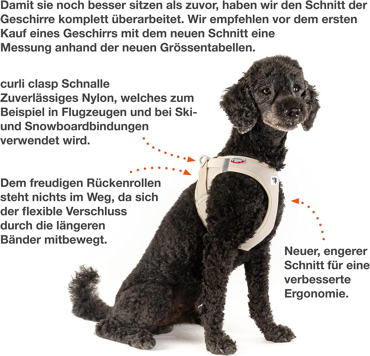 Das Curli Clasp Air-Mesh Hundegeschirr ist ein hochwertiges Brustgeschirr, das speziell für Hundehalter entwickelt wurde, die Wert auf Komfort, Sicherheit und einfache Handhabung legen. Es eignet sich ideal für den täglichen Spaziergang, längere Ausflüge sowie aktive Freizeitaktivitäten und bietet eine durchdachte Kombination aus moderner Technik, ergonomischem Design und langlebigen Materialien.