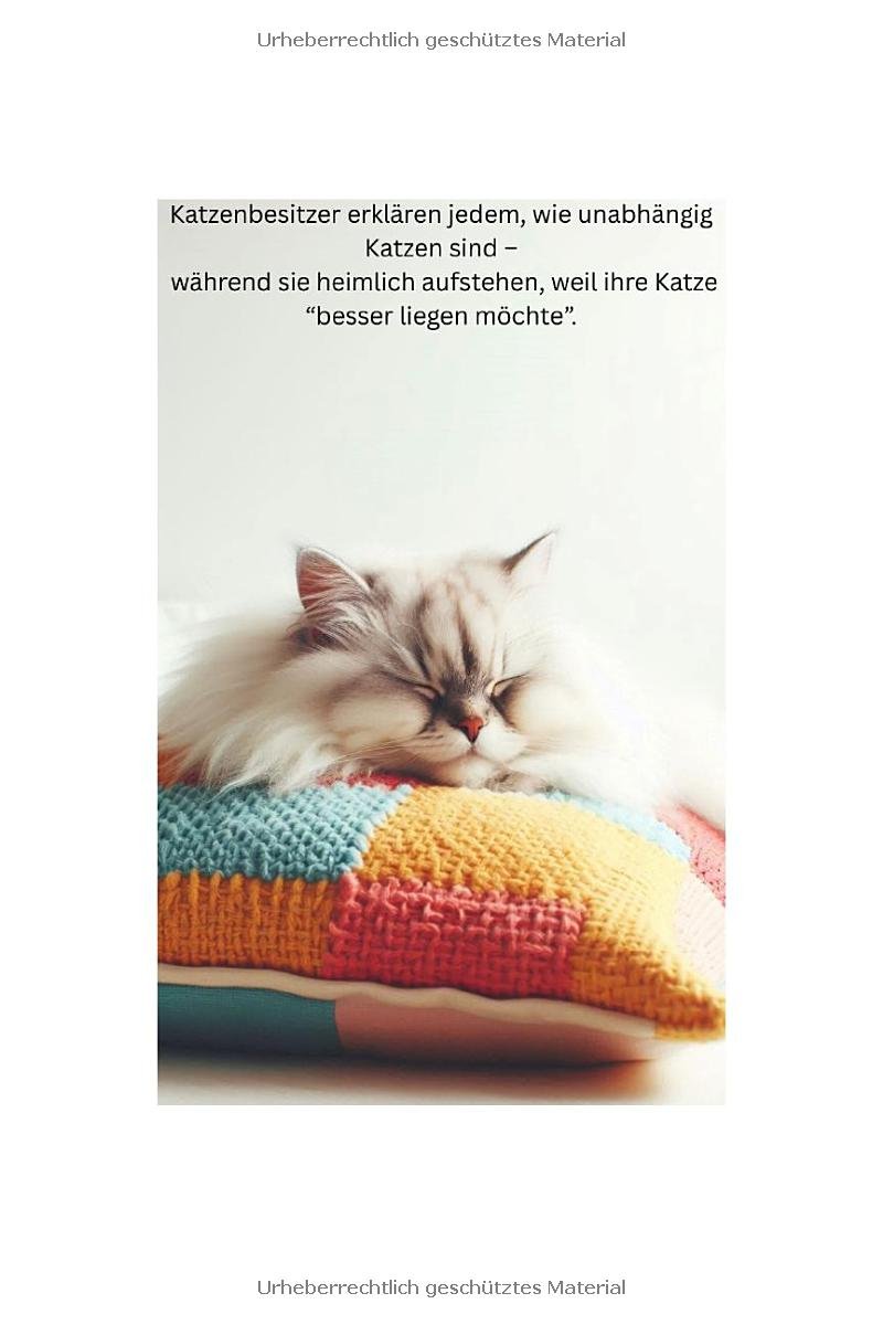 Darüber hinaus überzeugt das Buch durch seinen hohen Wiedererkennungsfaktor. Katzenliebhaber wissen, dass bestimmte Verhaltensweisen universell sind – unabhängig von Rasse, Alter oder Charakter der Katze. Genau diese Gemeinsamkeiten greift das Buch auf und verpackt sie in humorvolle Texte, die zum Schmunzeln anregen, ohne belehrend zu wirken. Dadurch entsteht eine angenehme Balance zwischen Unterhaltung und Identifikation.