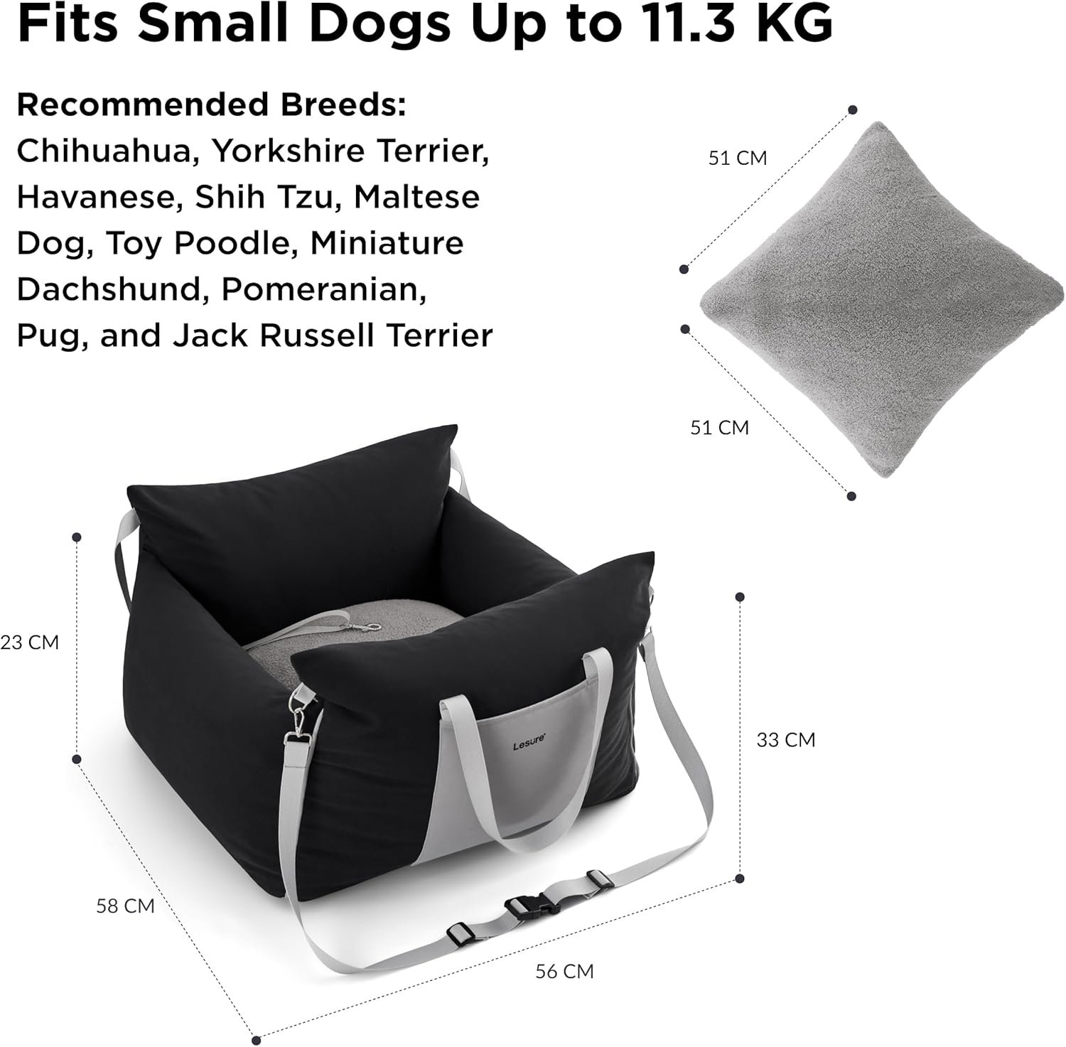 Lesure Hundesitz Auto kleine Hunde wasserdichter und waschbarer Hunde Autositz mit Aufbewahrungstaschen, ansteckbarer Sicherheitsleine und verdickter Memory Schaum Füllung, 58x56x33cm, schwarz